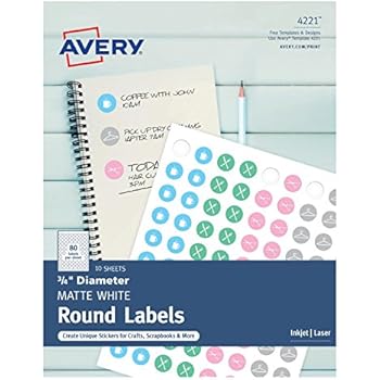 Use avery design and print online to get your circle labels printed today. 3 13 inch round labels 6 per sheet 300 circle stickers 50 sheets for inkjet laser printers by officesmartlabels. Try using our printable round. Avery matte print to the edge round labels 34 diameter pack of 800 4221 41 out of 5 stars33 laserink jet white labels 34 round 108 per page 5400 labels 43 out of 5 stars383 pack of 1260 34 inch round circle dot labels 8 12 x 11 inch sheet fits all laserinkjet printers.