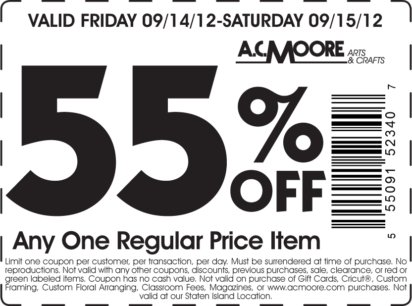 Ac moore printable coupons and promo codes. Our site offers acmoore coupon codes and ac moore printable coupon 50 off for you. Particularly renowned for its painting and sewing tools ac. Moore also sells scrapbooks photo cards painted t shirts and stamps.