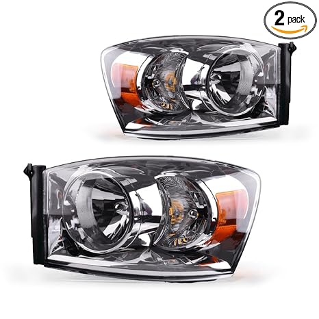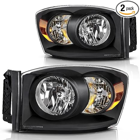 Headlight Assembly For 2006 2008 Dodge Ram 1500 2500 3500 Pickup Replacement Headlamp Driving Light Black Housing Amber Reflector Clear Lens