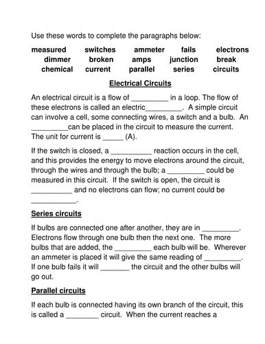 Electric Circuits Worksheet For 6th 9th Grade Lesson Planet