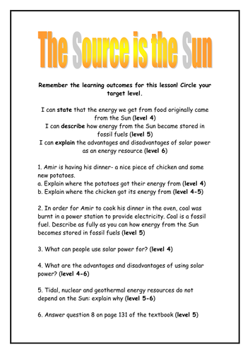 Sun As Energy Worksheets Teaching Resources Teachers Pay