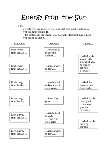 Energy Of The Sun Worksheet Teaching Resource Teach Starter