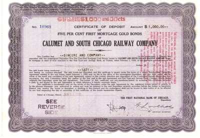 Calumet And South Chicago Railway Company Stock Bond