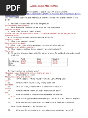 Acids And Bases Webquest Ph Acid