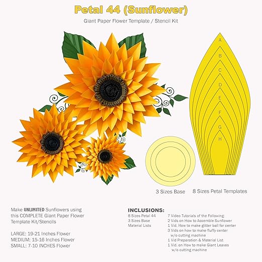 Diy paper sunflower with free svg template. These flowers are blank and have to be colored up in your preferred shade. Large set of 8 giant flower templates catching colorlfies voir plus.