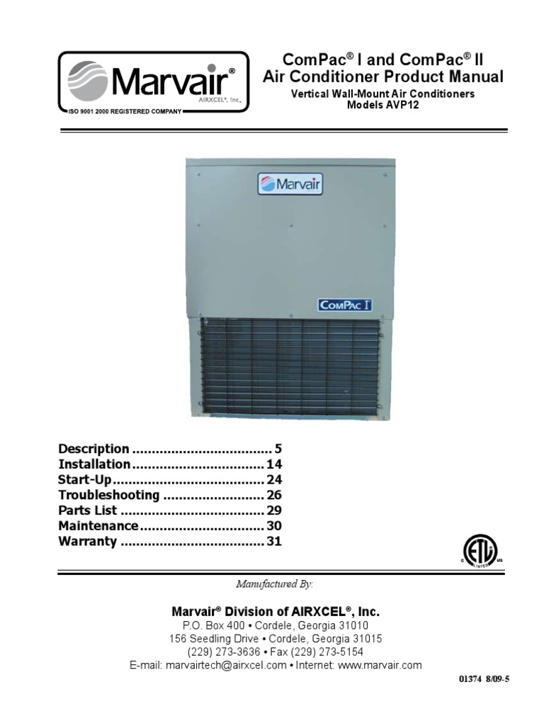 Compac I And Compac Ii Air Conditioner Product Manual Pdf