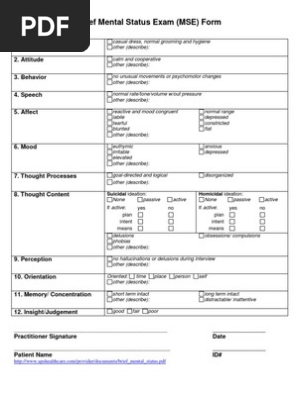 Brief Mental Status Exam Mse Form Pdfsimpli