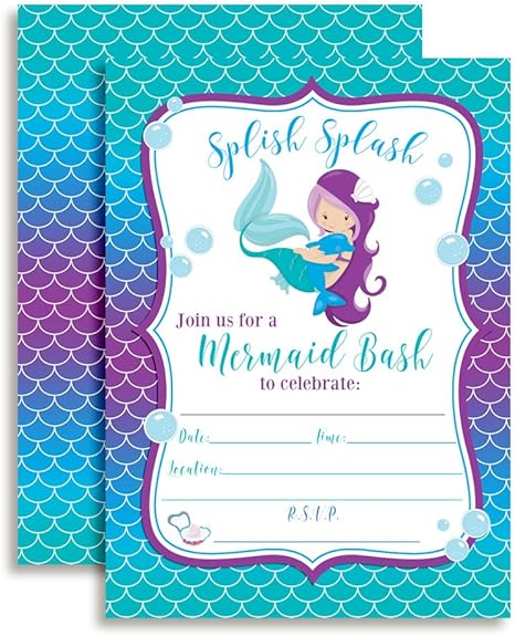 Mermaid Birthday Party Invitations Fill In Style 20 Count With Envelopes