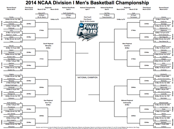 Ncaa Printable Bracket With Game Times