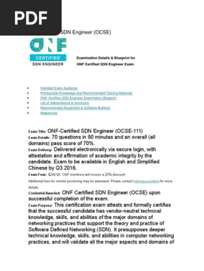 Onf certified sdn associate ocsa is awarded upon successful completion of the exam arranged by one. The onf describes the ocse as a mastery level sdn certification for technical professionals and emphasizes the need for hands on experience before attempting the exam. Onf certified sdn associate ocsa is awarded upon successful completion of the exam arranged by one. Onf certified sdn associate certification ocsa training course is a preparation for onf certified sdn associate ocsa 110.