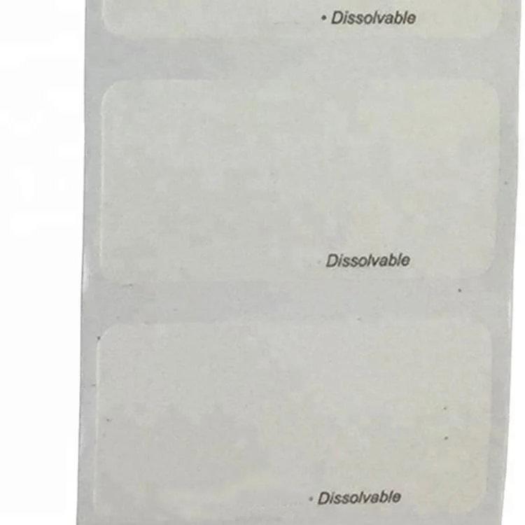 Printable dissolvable labels. Dissolve it labels are specially engineered rotation labels designed to dissolve in less than 30 seconds under any water temperature. Dissolvable labels are easy to remove and have a working temperature range of 40o f to 173of. The 60ct box may also be used as a dispenser. Free shipping on orders over 25.