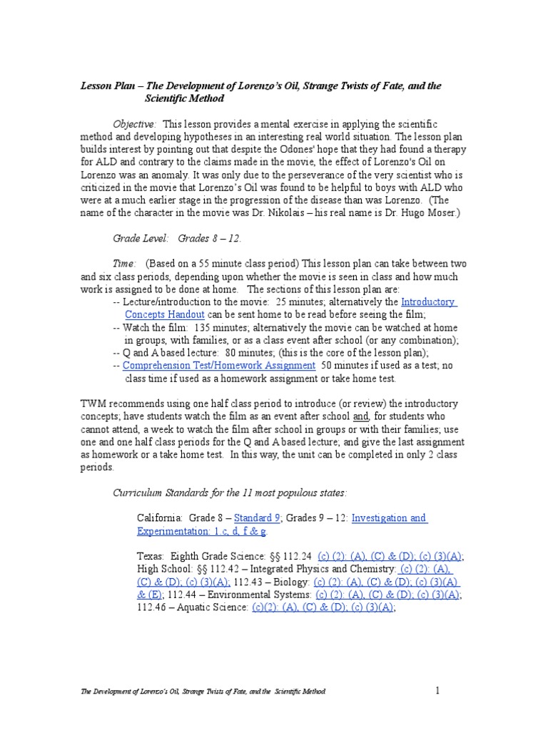Lorenzo Scientific Method Fatty Acid Hypothesis