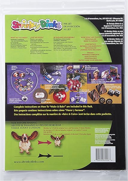The shrinky dinks refill set includes 6 blank 5 x 7 sheets for refilling your shrinky dink. Shrinky dinks ink jet pack 6ct. Dabit shrinky art paper kit 20 pack crystal clear plastic blank sheets shrink film bulk size thats a dinks for kids bonus key chains and traceable pictures 43 out of 5 stars 289 1395 13. Shrinky dinks ink jet plastic sheet by shrinky dinks shrinky dinks ink jet lets you make unique plastic pieces out of photos screen grabs or art created on your computer.
