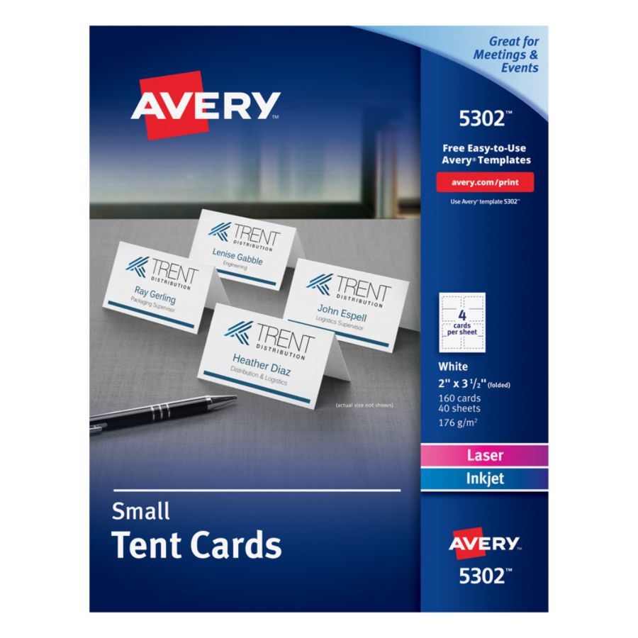 Avery Small Tent Cards Uncoated Two Sided Printing 2 X 3 1 2 160 Cards 5302