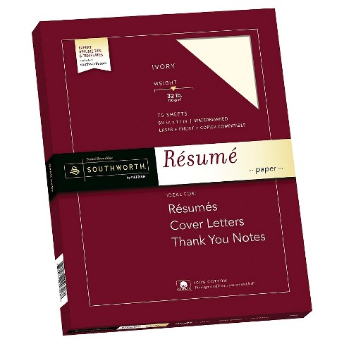 These 100 sheets of southworth resume paper work on copiers laser and inkjet printers to produce a variety of business or professional documents. Get free shipping on your qualifying orders of southworth 100 cotton resume paper 8 12 x 11 24 lb wove finish ivory 100box. Fine stationery has a rich linen paper texture and distinctive crispness that set it apart from ordinary printer paper or copy paper.