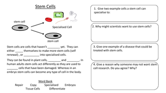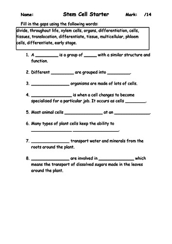 Describe in simple terms how cells genetically identical to a patient could be obtained. Stem cell worksheet. Topics start with the scientific names and processes at each stage and then. Find stem cells lesson plans and worksheets.