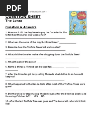 The Lorax By Dr Seuss Worksheet Answers Key Fill Online