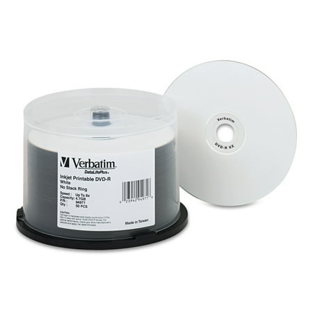 This is a 100 pack of verbatim dvd r 47gb 16x inkjet printable discsthe discs offer 47gb or 120 minutes of write once storage capacity superior recording quality and compatibility with 1x to 16x dvd r writers. White inkjet printable dvd media is available in dvdr and dvd r formats.
